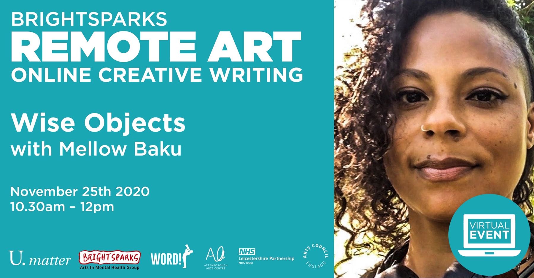 Join BrightSparks Arts – in collaboration with WORD! Leicestershire Partnership NHS Trust and University of Leicester, U.matter – for this brand new set of Wednesday morning online creative writing workshops, open to all and designed to boost your health, wellbeing and creative skills.