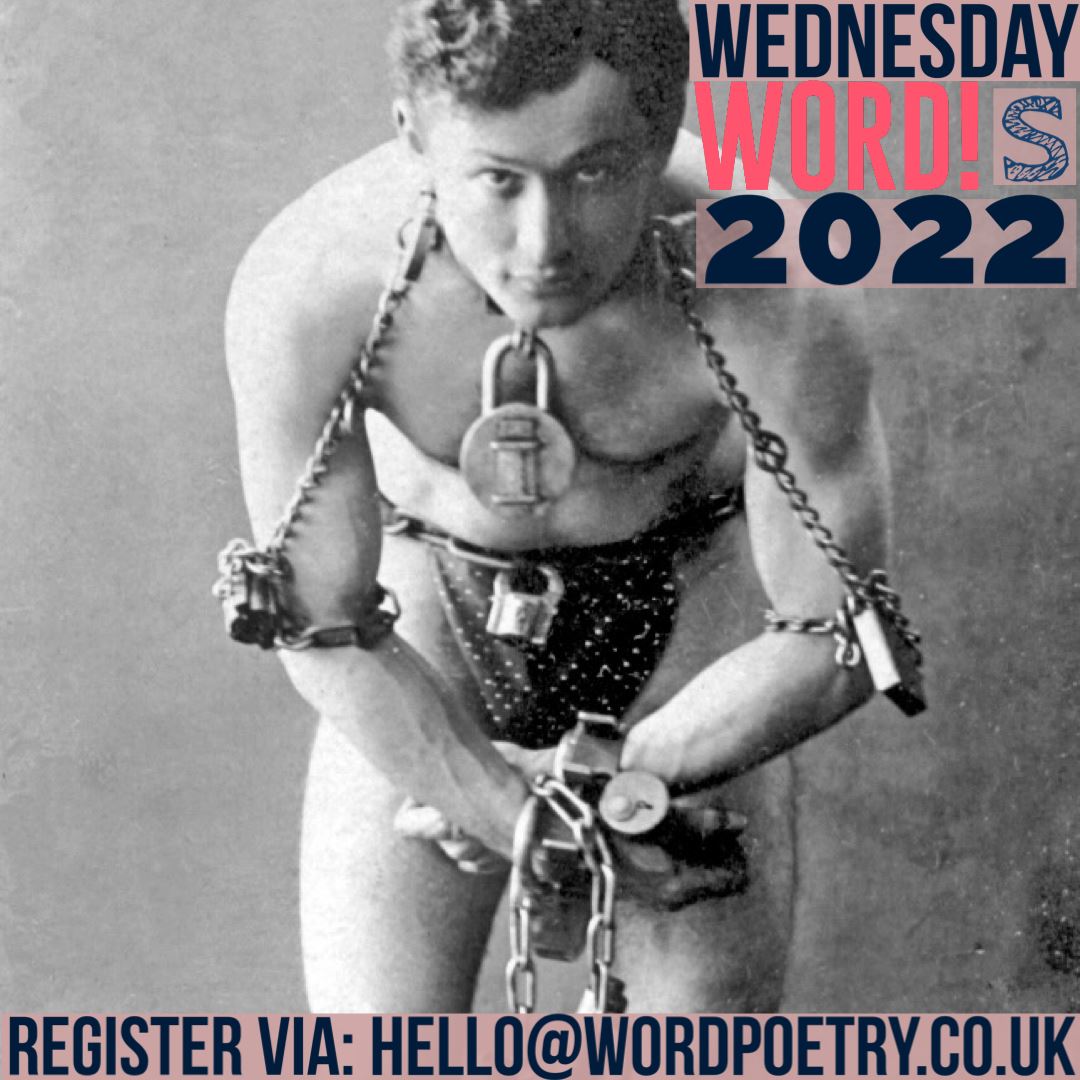 @import url(https://www.wordpoetry.co.uk/CuteSoft_Client/CuteEditor/Load.ashx?type=style&file=SyntaxHighlighter.css);@import url(/preview/styles-cuteeditor.css); This week join us for a magical Wednesday WORD! - exploring magic, escapology and creative writing - with magician, poet and educator, John Constantinou.John Constantinou is a member of the Wednesday WORD!s Collective and has had a near 30-year career in education. He started as a college lecturer for a number of years before retraining as a careers adviser, moving into the Higher Education sector at the University of Leicester for 20 years before taking early retirement. He fulfilled a variety of roles at the university all of which involved considerable amounts of lecturing, workshopping, and facilitating skills sessions - a background that is useful in this context.John’s background as a magician will heavily inform the themes of this week’s session. The workshop will be suitable for all levels but no experience is required - of writing, magic, or escapology…*Image descriptionA black and white photograph of the escapologist, Houdini. He is pictured faced forward in a standing position, naked apart from a spotted loin cloth and set of interlinking padlocks and chains. The chains restrict his body so that he is slightly hunched over, with a chain going from one arm to another via the back of his neck. His hands are bound in front of him. There is another padlocked chain around his middle and another round his neck, this last secured by a larger lock. The Wednesday WORD! logo is position on top right hand corner of the image. Along the bottom of the image runs the line: ‘REGISTER VIA